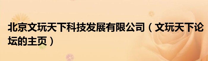 北京文玩天下科技发展有限公司(文玩天下论坛的主页)