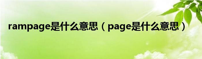 关于rampage是什么意思,page是什么意思这个很多人还不知道,今天菲菲来为大家解答以上的问题,现在让我们一起来看看吧!
