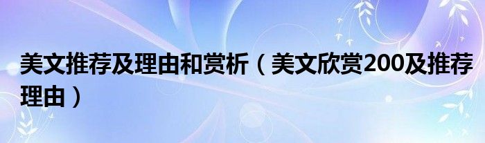 关于美文推荐及理由和赏析,美文欣赏200及推荐理由这个很多人还不知道,今天菲菲来为大家解答以上的问题,现在让我们一起来看看吧!