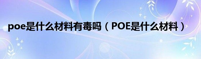 关于poe是什么材料有毒吗,POE是什么材料这个很多人还不知道,今天菲菲来为大家解答以上的问题,现在让我们一起来看看吧!
