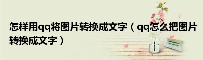 大家好,小晋来为大家解答以下问题,关于怎样用qq将图片转换成文字,qq怎么把图片转换成文字很多人还不知道,今天让我们一起来看看吧!