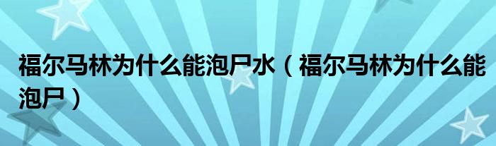 大家好,小晋来为大家解答以下问题,关于福尔马林为什么能泡尸水,福尔马林为什么能泡尸很多人还不知道,今天让我们一起来看看吧!