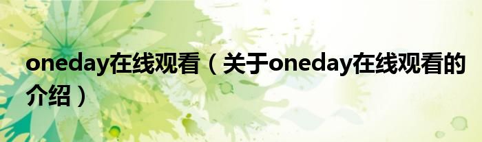 oneday在线观看(关于oneday在线观看的介绍)