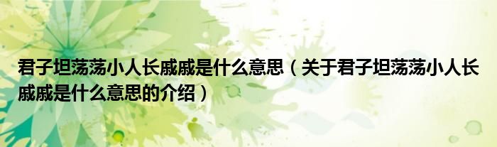 君子坦荡荡小人长戚戚是什么意思(关于君子坦荡荡小人长戚戚是什么意思的介绍)