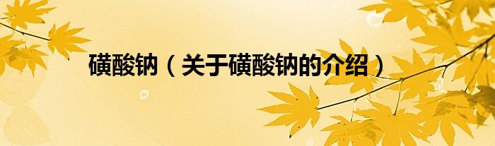 大家好,小都来为大家解答以上的问题。磺酸钠,关于磺酸钠的介绍很多人还不知道,现在让我们一起来看看吧!