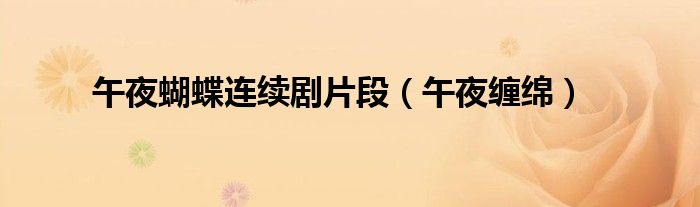 午夜蝴蝶连续剧片段,午夜缠绵很多人还不知道,乐乐来为大家解答以上问题,现在让我们一起来看看吧!