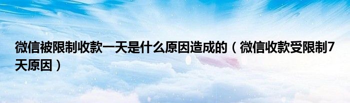 大家好,小晋来为大家解答以下问题,关于微信被限制收款一天是什么原因造成的,微信收款受限制7天原因很多人还不知道,今天让我们一起来看看吧!