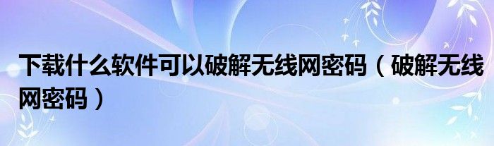 下载什么软件可以破解无线网密码(破解无线网密码)