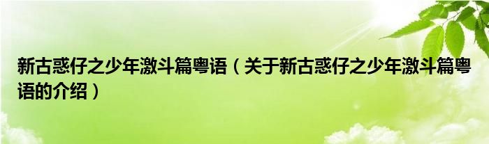 新古惑仔之少年激斗篇粤语(关于新古惑仔之少年激斗篇粤语的介绍)