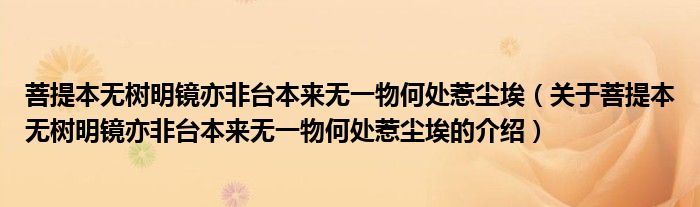 菩提本无树明镜亦非台本来无一物何处惹尘埃(关于菩提本无树明镜亦非台本来无一物何处惹尘埃的介绍)