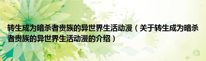 转生成为暗杀者贵族的异世界生活动漫(关于转生成为暗杀者贵族的异世界生活动漫的介绍)