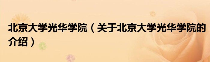 大家好,小都来为大家解答以上的问题。北京大学光华学院,关于北京大学光华学院的介绍很多人还不知道,现在让我们一起来看看吧!