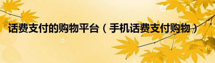大家好,小晋来为大家解答以下问题,关于话费支付的购物平台,手机话费支付购物很多人还不知道,今天让我们一起来看看吧!