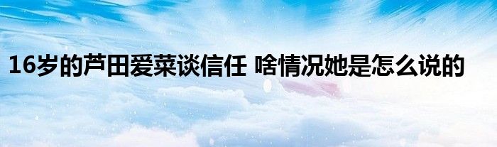 大家好.我是互联百科的羽儿,现在为大家解决以上16岁的芦田爱菜谈信任 啥情况她是怎么说的的问题.
