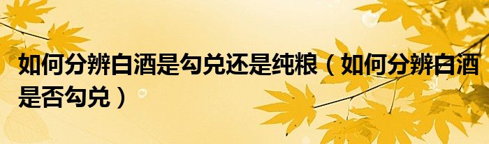 关于如何分辨白酒是勾兑还是纯粮,如何分辨白酒是否勾兑这个很多人还不知道,今天菲菲来为大家解答以上的问题,现在让我们一起来看看吧!
