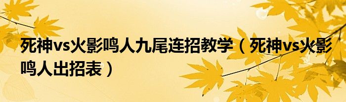 关于死神vs火影鸣人九尾连招教学,死神vs火影鸣人出招表这个很多人还不知道,今天菲菲来为大家解答以上的问题,现在让我们一起来看看吧!