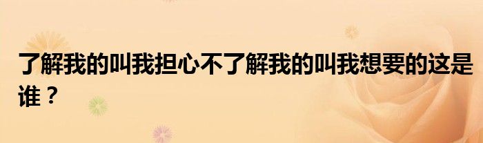 关于了解我的叫我担心不了解我的叫我想要的这是谁?这个很多人还不知道,今天菲菲来为大家解答以上的问题,现在让我们一起来看看吧!