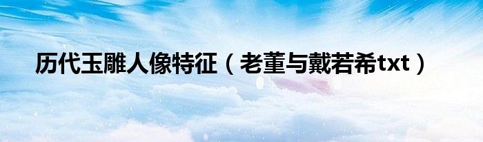 关于历代玉雕人像特征,老董与戴若希txt这个很多人还不知道,今天菲菲来为大家解答以上的问题,现在让我们一起来看看吧!