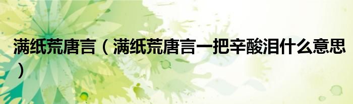 满纸荒唐言(满纸荒唐言一把辛酸泪什么意思)