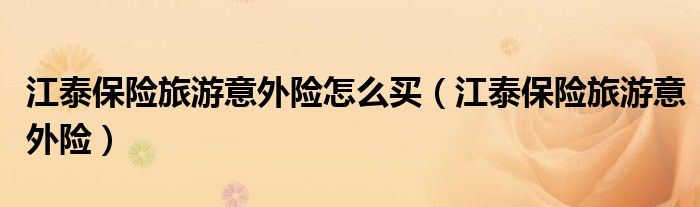 关于江泰保险旅游意外险怎么买,江泰保险旅游意外险这个很多人还不知道,今天菲菲来为大家解答以上的问题,现在让我们一起来看看吧!