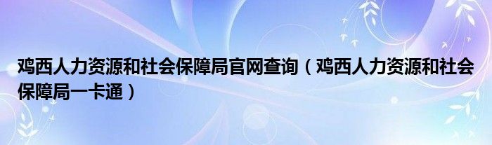 鸡西人力资源和社会保障局官网查询(鸡西人力资源和社会保障局一卡通)