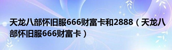天龙八部怀旧服666财富卡和2888(天龙八部怀旧服666财富卡)