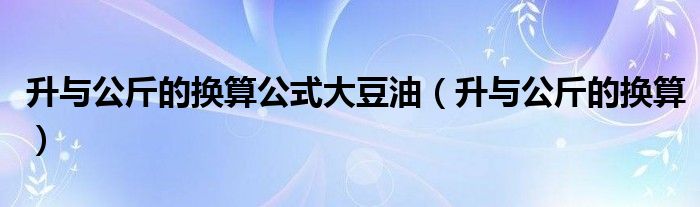 关于升与公斤的换算公式大豆油,升与公斤的换算这个很多人还不知道,今天菲菲来为大家解答以上的问题,现在让我们一起来看看吧!
