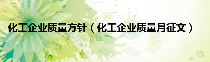 关于化工企业质量方针,化工企业质量月征文这个很多人还不知道,今天菲菲来为大家解答以上的问题,现在让我们一起来看看吧!