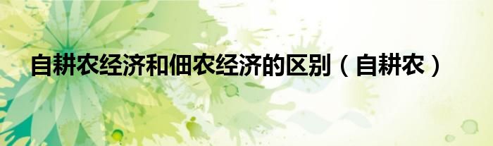 自耕农经济和佃农经济的区别(自耕农)