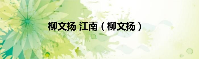 关于柳文扬 江南,柳文扬这个很多人还不知道,今天菲菲来为大家解答以上的问题,现在让我们一起来看看吧!