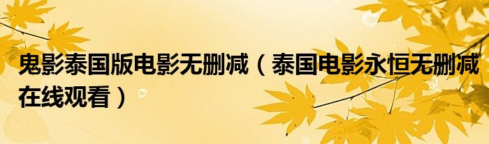 鬼影泰国版电影无删减(泰国电影永恒无删减在线观看)