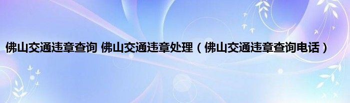 佛山交通违章查询 佛山交通违章处理(佛山交通违章查询电话)