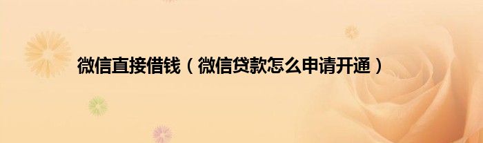 微信直接借钱(微信贷款怎么申请开通)