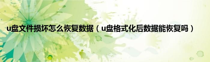 u盘文件损坏怎么恢复数据(u盘格式化后数据能恢复吗)