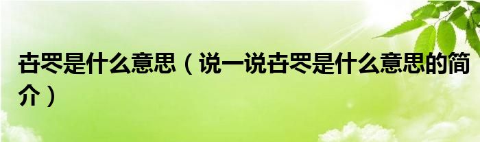 卋罖是什么意思(说一说卋罖是什么意思的简介)