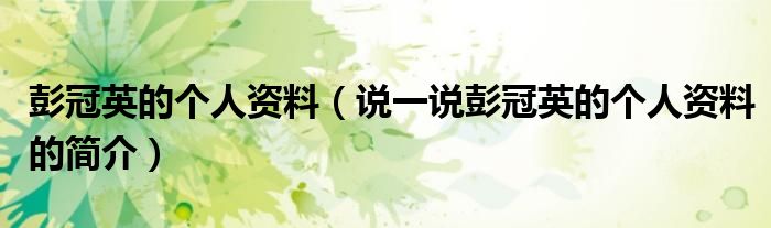 夏弥来为大家解答以下的问题,彭冠英的个人资料,说一说彭冠英的个人资料的简介,现在让我们一起来看看吧!