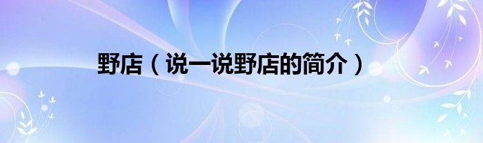 夏弥来为大家解答以下的问题,野店,说一说野店的简介,现在让我们一起来看看吧!