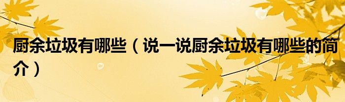 夏弥来为大家解答以下的问题,厨余垃圾有哪些,说一说厨余垃圾有哪些的简介,现在让我们一起来看看吧!