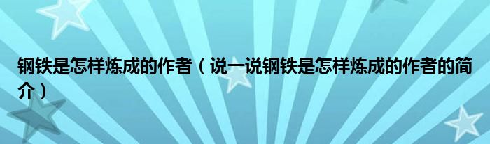 钢铁是怎样炼成的作者(说一说钢铁是怎样炼成的作者的简介)
