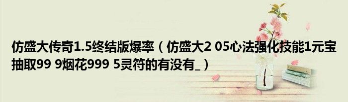 关于仿盛大传奇1.5终结版爆率,仿盛大2 05心法强化技能1元宝抽取99 9烟花999 5灵符的有没有_这个很多人还不知道,今天菲菲来为大家解答以上的问题,现在让我们一起来看看吧!