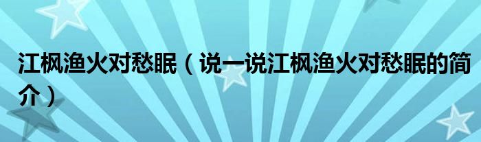 江枫渔火对愁眠(说一说江枫渔火对愁眠的简介)