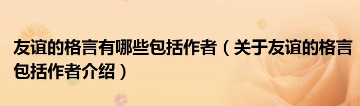 关于友谊的格言有哪些包括作者,关于友谊的格言包括作者介绍这个很多人还不知道,今天菲菲来为大家解答以上的问题,现在让我们一起来看看吧!