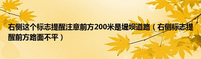 关于右侧这个标志提醒注意前方200米是堤坝道路,右侧标志提醒前方路面不平这个很多人还不知道,今天菲菲来为大家解答以上的问题,现在让我们一起来看看吧!