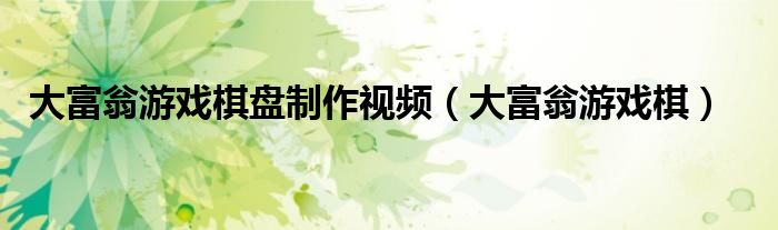 大富翁游戏棋盘制作视频(大富翁游戏棋)