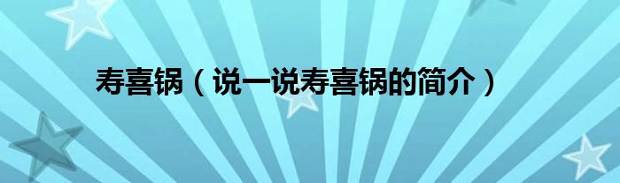 寿喜锅(说一说寿喜锅的简介)