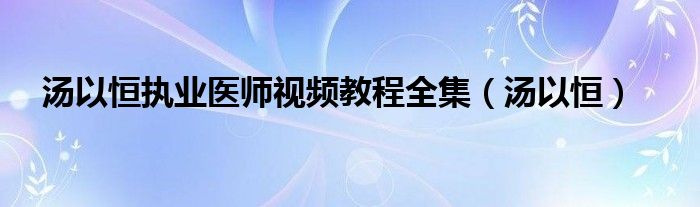 关于汤以恒执业医师视频教程全集,汤以恒这个很多人还不知道,今天菲菲来为大家解答以上的问题,现在让我们一起来看看吧!