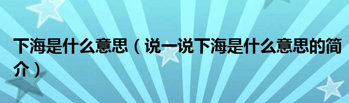 下海是什么意思(说一说下海是什么意思的简介)