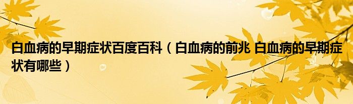 白血病的早期症状百度百科(白血病的前兆 白血病的早期症状有哪些)