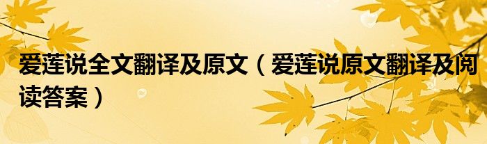 大家好,乐儿来为大家解答以下问题,爱莲说全文翻译及原文,爱莲说原文翻译及阅读答案很多人还不知道,现在让我们一起来看看吧!