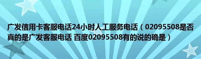 关于广发信用卡客服电话24小时人工服务电话,02095508是否真的是广发客服电话 百度02095508有的说的确是这个很多人还不知道,今天菲菲来为大家解答以上的问题,现在让我们一起来看看吧!